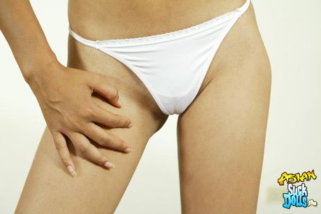 Asian Suck Dolls: Slim brunette strips from white outfit