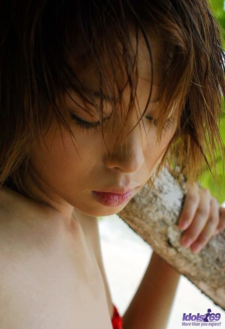 Idols 69: Slutty Asian teen poses in her red lingerie showing her great tits