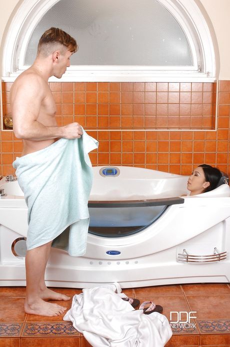 Only Blowjob: Stunning oriental Nicoline sucks on dick and enjoys a cum blast in her mouth in bathroom