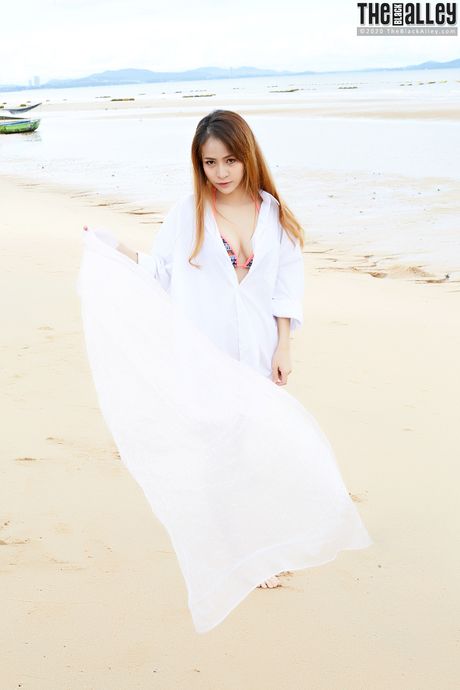 The Black Alley: Super hot Asian Eileen strips off her bikini and presents her hot ass on the beach