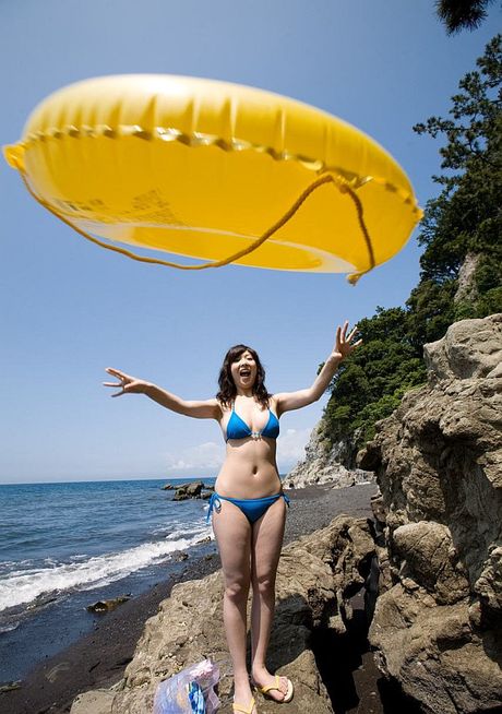 Bikini Pleasure: Superb Asian babe with tiny tits strips and shows her ass on the beach