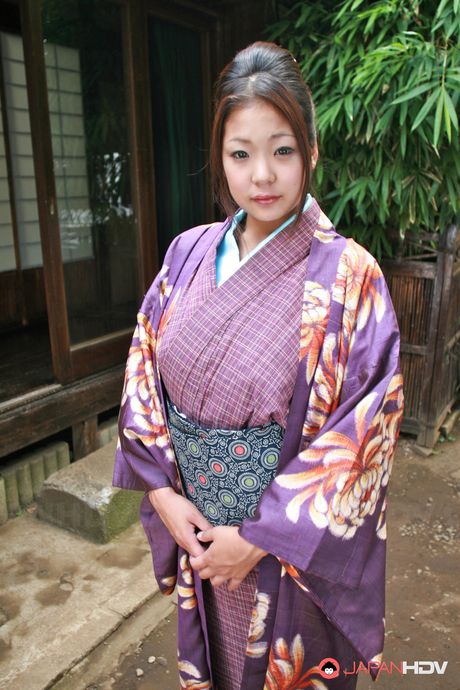 Japan HDV: Sweet brunette in a purple kimono wants to show her fine twat