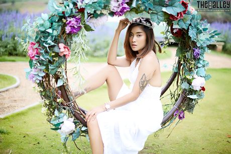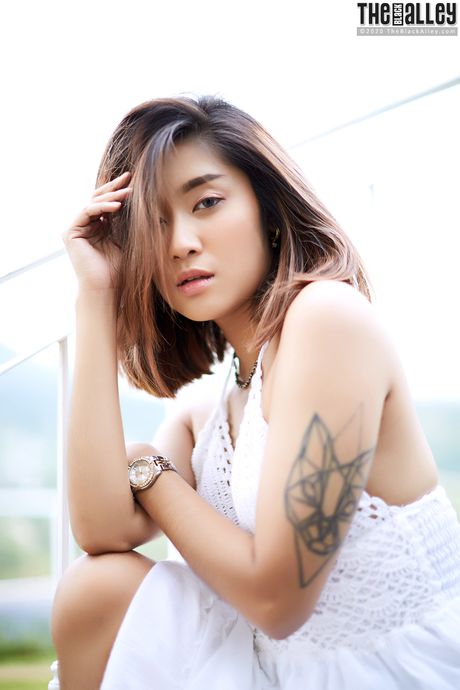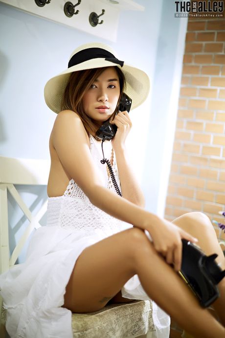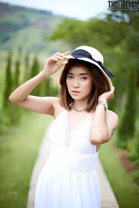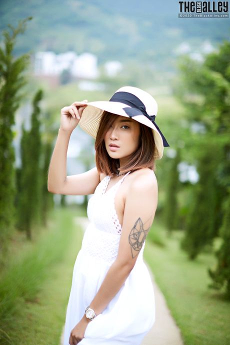 The Black Alley: The Asian babe Apple strips and shows her hairy pussy in a solo outdoors
