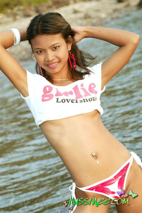 Tussinee: Tiny teen Thai girl takes a swim in the Gulf of Thailand