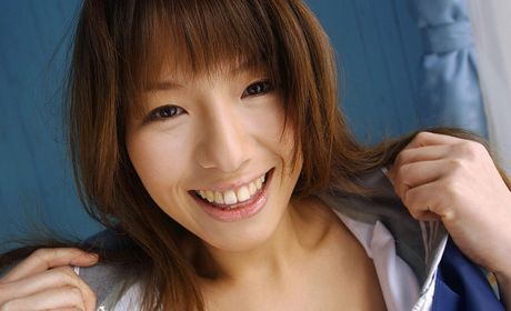 Idols 69: Towa Aino schoolgitl model shows off big boob cleavage in an open shirt