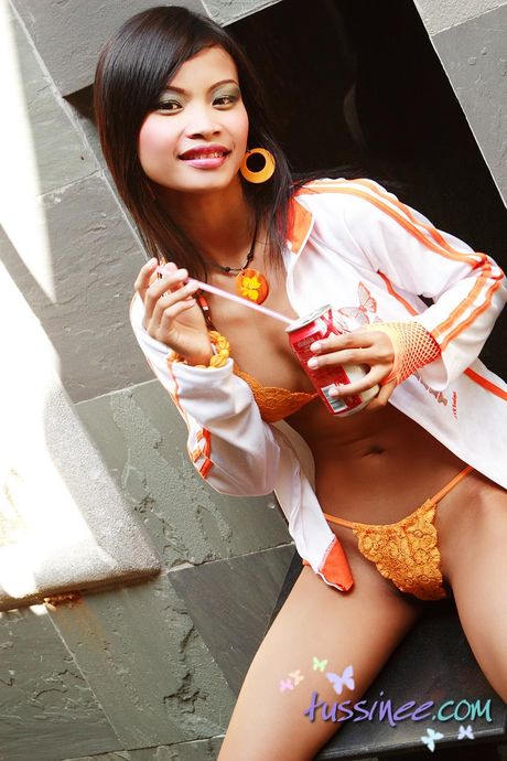 Tussinee: Tussinee posing outdoors sucking on a straw