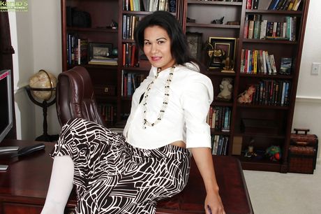 Karups Older Women: Very attractive oriental mature Susie Jhonson in lingerie exposes small tits and bald pussy