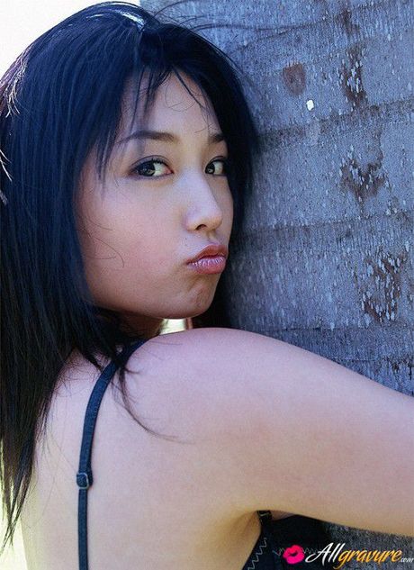 All Gravure: Yoko Mitsuya busty Asian posing outside in her black bikini
