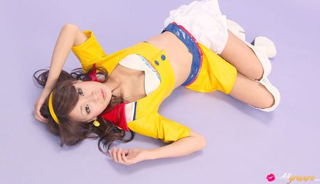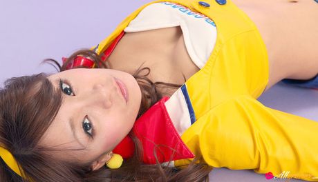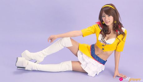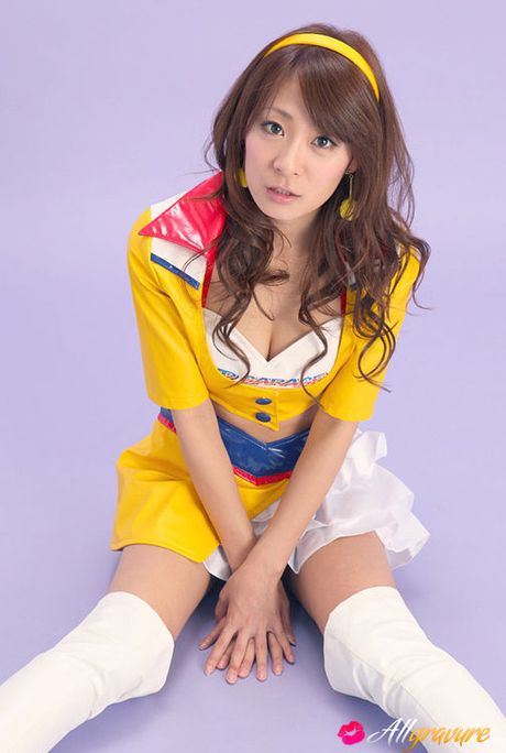 All Gravure: Yuki Aikawa Asian in long boots and latex suit has hot cleavage